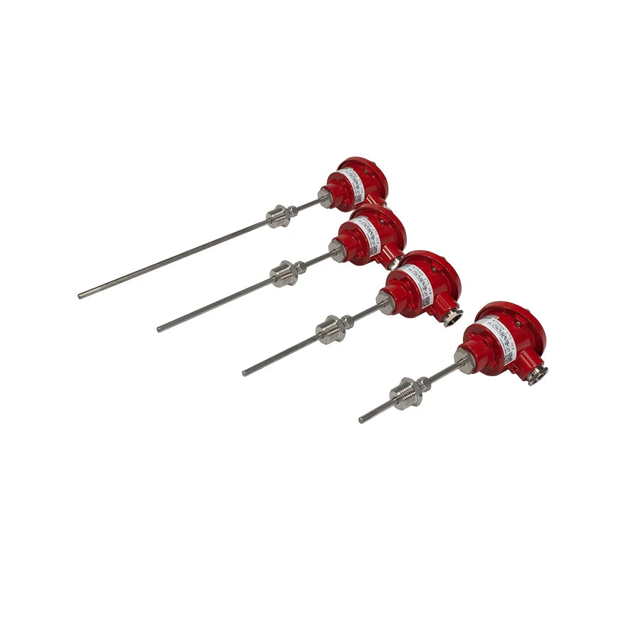 PT100 probe with DIN B head is a resistance thermometer with a nominal resistance of 100 ohms at 0°C, with an accuracy of ±0.15°C (coefficient of variation is 0.00385 ohm per °C). The DIN B head is standardised for easy installation on industrial equipment. This type of probe is commonly used for temperature measurement in industrial applications such as food and beverage production, building automation, the chemical and pharmaceutical industry, and many others.